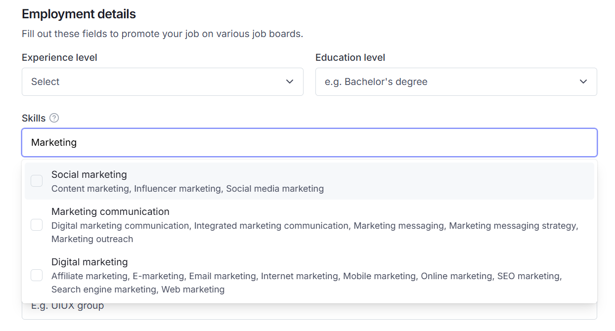 Define what each skill level means for this role specifically. Reviewers assess against this guide, creating consistency across the team and strengthening the skills-based hiring process.