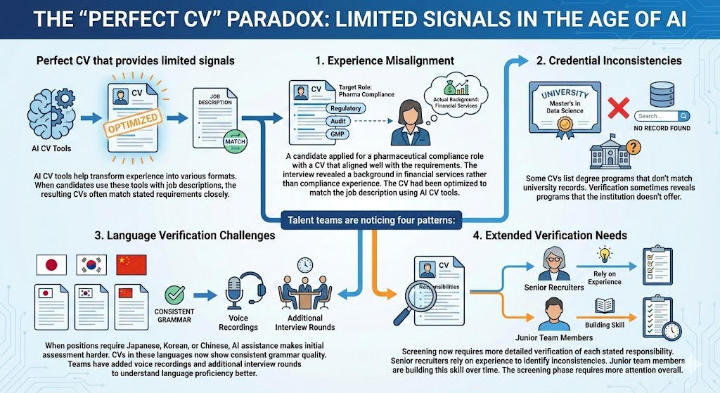 When positions require Japanese, Korean, or Chinese, AI assistance makes initial assessment harder. CVs in these languages now show consistent grammar quality. Teams have added voice recordings and additional interview rounds to understand language proficiency better.